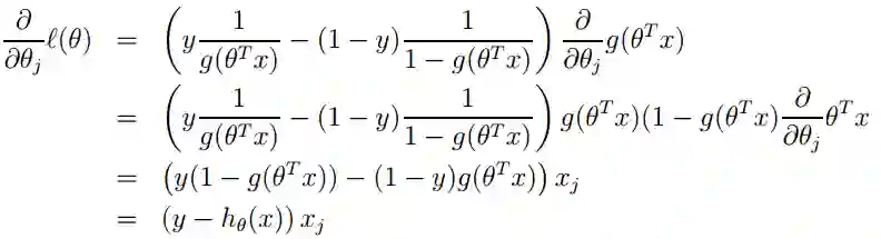 3. 其实它的loss function为-l(θ),因此我们需使loss function最小,可采用梯度下降法得到。梯度下降法公式为: