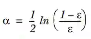2. 通过ε来计算该弱分类器的权重α,公式如下: