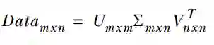 SVD将矩阵分解为三个矩阵的乘积,公式如下所示: