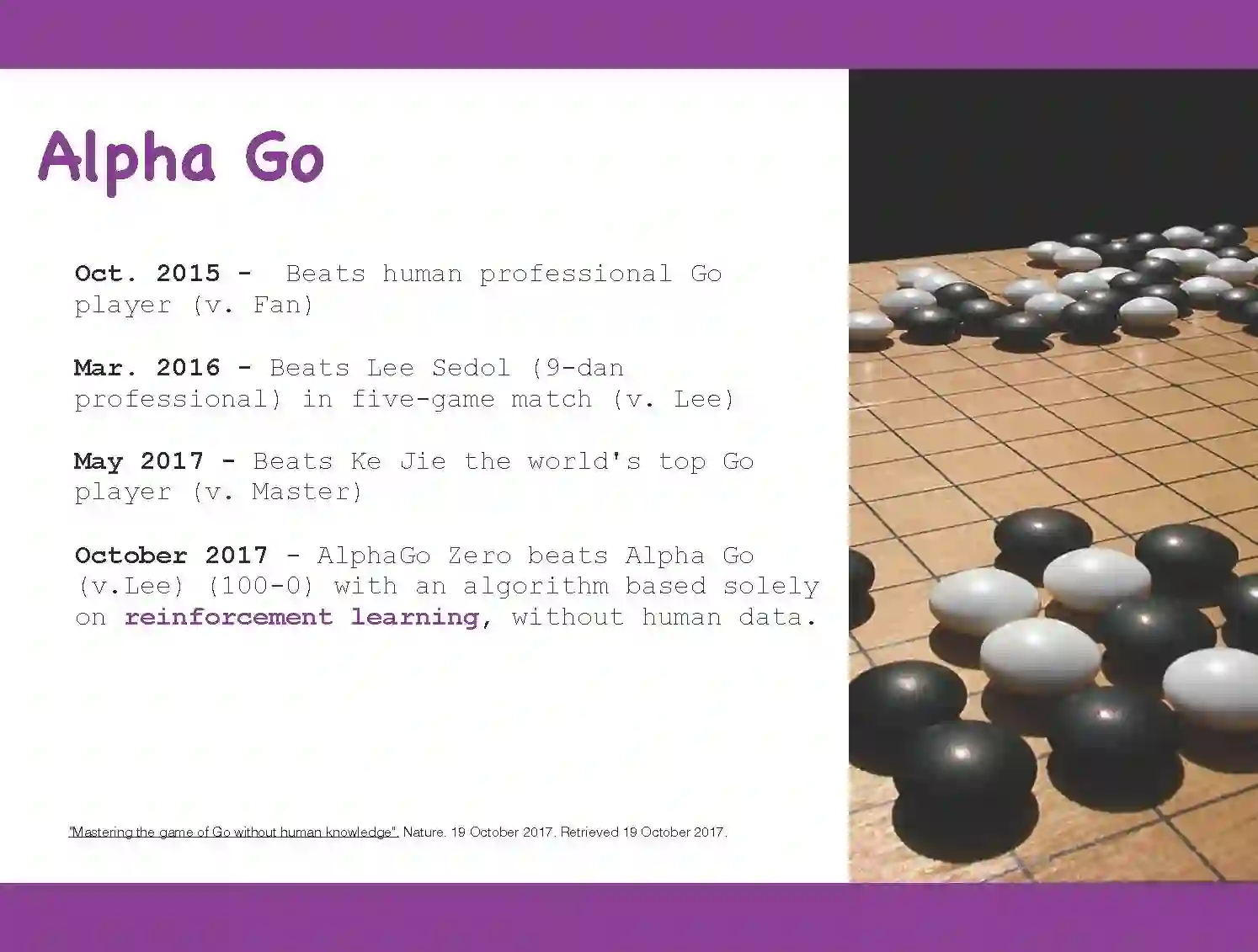 AlphaGo Zero's win, what itmeans, Fast Forward Labs: http:// blog.fastforwardlabs.com/2017/10/25/alphago-zero.html