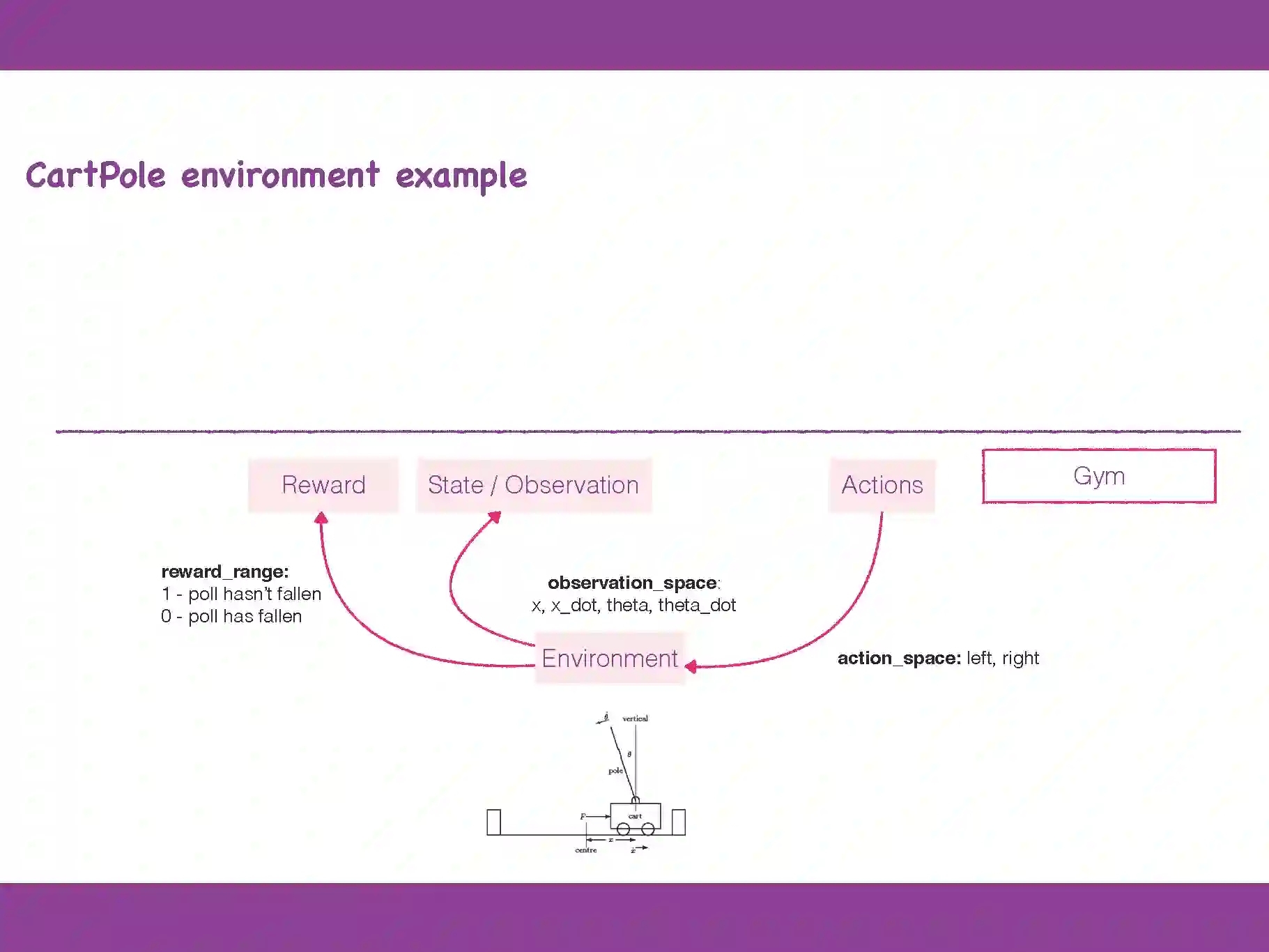 更详细的描述可参见openai官网上关于Cartpole问题的解释:https://gym.openai.com/envs/CartPole-v0