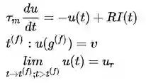 SNN的神经元模型总体上来说是一类以微分方程构成的模型,带有时间属性。可以理解为传统的神经元只是当前时刻的输入与权重的加权和,SNN的神经元则是在一定宽度的时间窗内的输入与权重的加权和。其中最常见的神经元模型是L&F(Leak and Fire)模型,也可以把这种神经元看做为一个店带有电容的电路,按照电路原理来定义可以有如下形式: