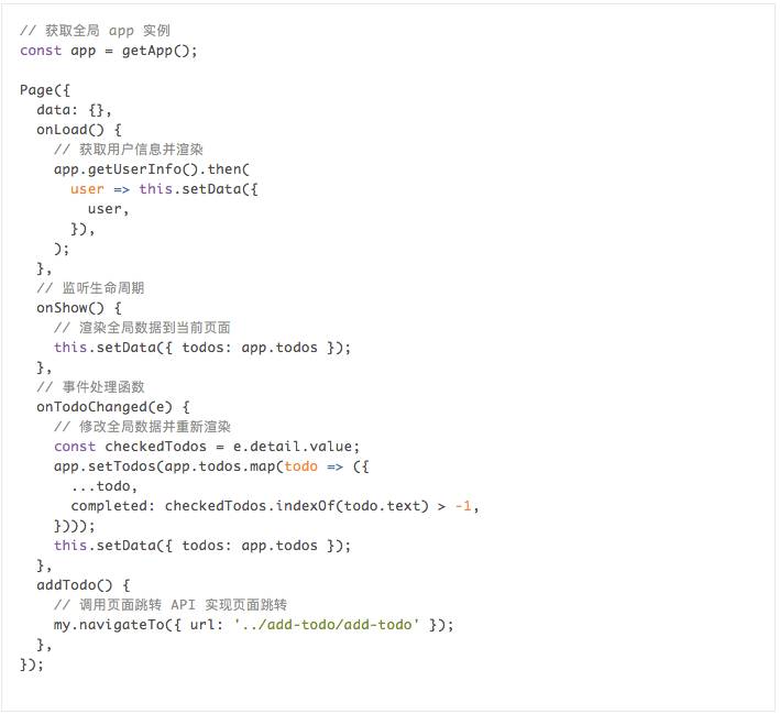 获取小程序实例以及其他页面实例 (getApp, getCurrentPages)。