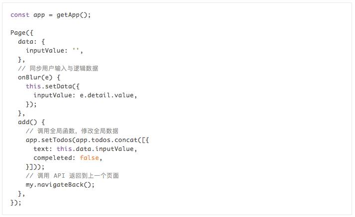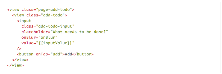 相对于 todo list 页面,add-todo 页面使用了新的 <input/> (https://docs.alipay.com/mini/component/input)来接受用户输入。