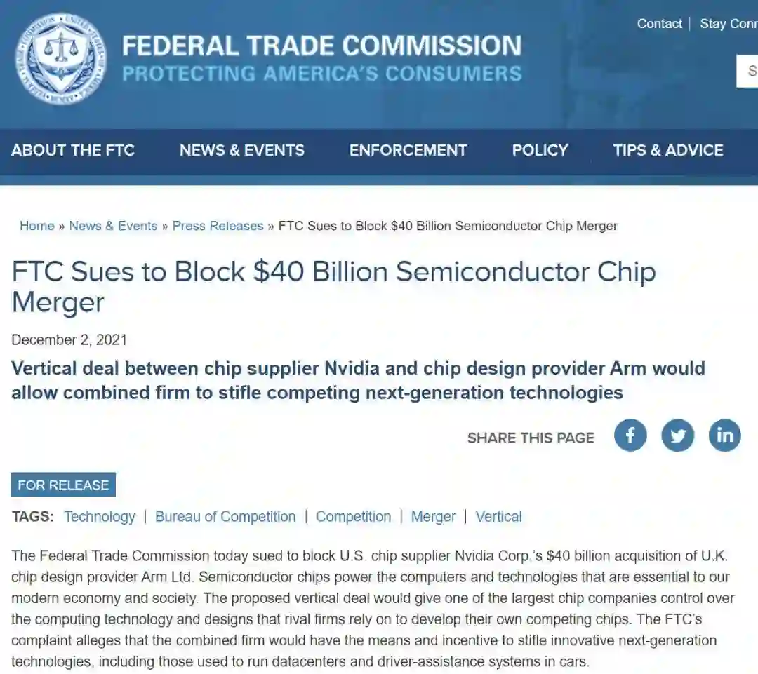 若收购 Arm 成功,在 GPU 占主导地位的英伟达就会在芯片设计领域占据上游位置。但此类大宗并购交易需要主要经济体(中国、美国、欧盟和英国)的批准,各国政府对于垄断存在担忧,该交易引发了监管部门的强烈反对,Arm 的客户也对此不满。美国联邦贸易委员会曾于去年 12 月起诉英伟达阻止交易,称如果英伟达获得对 Arm 芯片设计的控制权,它将变得过于强大。