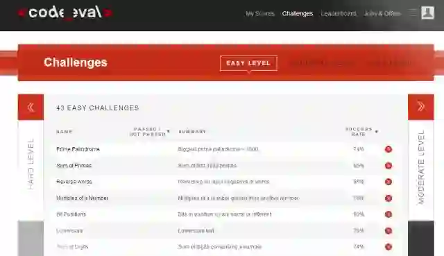 CodeEval类似于HackerRank,它还提供了很多公司发起的挑战,如果能很好地完成这些挑战,你还有机会得到一份工作。公司可以创建挑战和举办竞争比赛来招募新的工作人员。挑战者可以在这里查看当前的挑战列表。