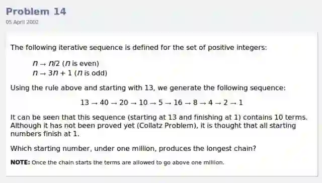 Project Euler提供了很多关于计算机科学和数学领域的挑战。挑战内容大致都是要求挑战者编写一段小程序从而为某个数学公式或方程式提供解决方案。