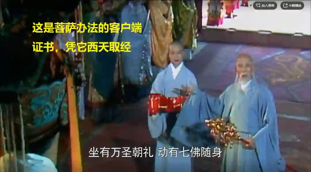 当然,一开始观音菩萨拿出锡杖和袈这个证书的时候,大家也不相信,所以需要观音菩萨现出真身,作为CA,证明给客户端,唐王李世民和玄奘法师才下拜。