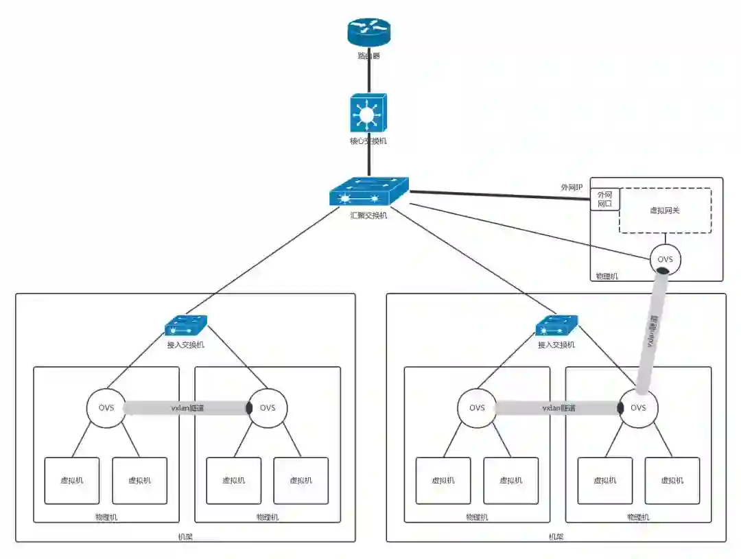 Openvswitch如何转换呢?使用的是一种称为VXLAN的封装技术,但是必须要事先知道芝麻开门的ID,也即VXLAN ID,才能看到经文的真正内容。