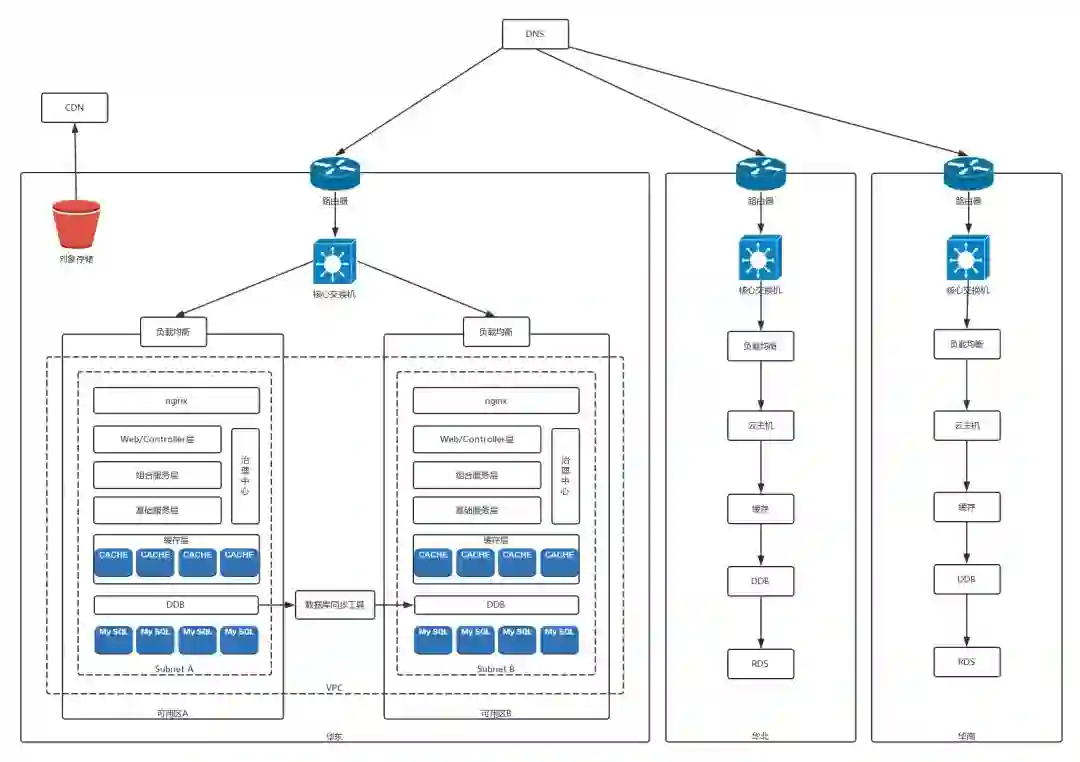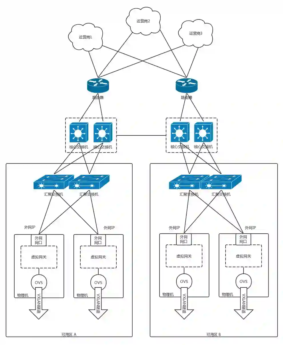 刚才那张图画的是一个可用区的情况,对于多个可用区的情况,我们可以隐去计算节点的情况,将外网访问区域放大。