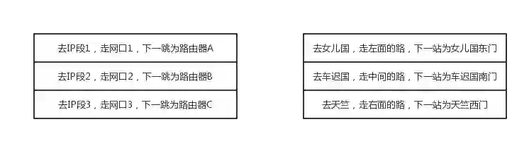 这个叫路由表,根据这个表格,可以告诉唐僧怎么走。