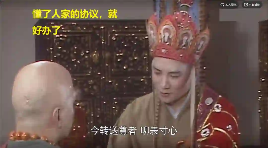 就像误入小雷音一集中,白眉老佛想吃了唐僧肉,自己披上袈裟,西天取经,求得正果。