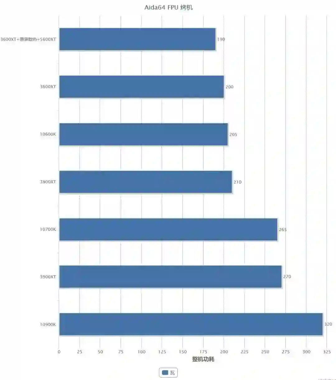 最后再来看看各个处理器的整机烤机功耗表现,12核的3900XT与8核的10700K整机功耗相当,7nm工艺显然功不可没。