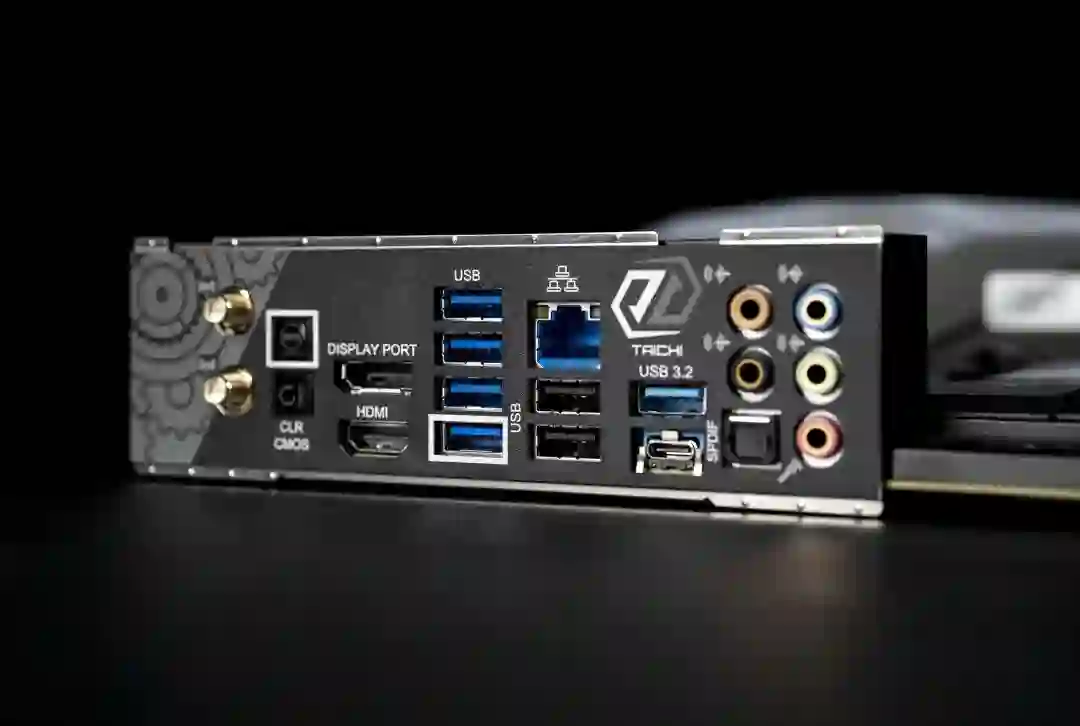 X570太极的RGB背板也没有因为芯片组等级做阉割,IO接口方面因为芯片组总线的升级,数量也相当丰富,总的来看比起B450,可拓展空间更高些,但两者的选购范围并不冲突。