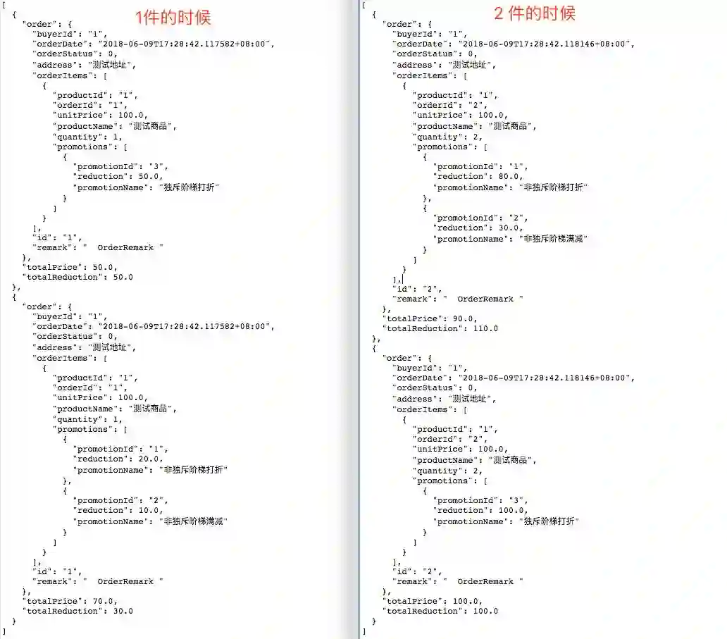 我们假设有这么一个应用入口:传入一个购物车(这里等价于订单)id,获取其可以参加的促销活动,返回对应活动优惠后的结果,并按总价的最低依次升序,那么可以这么写: