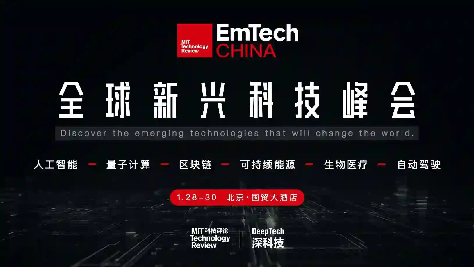 1 月 28 - 1 月 30 日,北京国贸大酒店,全球最值得关注的顶尖科技头脑与你不见不散。EmTech China 全球新兴科技峰会一定会是全方位革新你的前沿科技知识与人脉体系的重要机会。