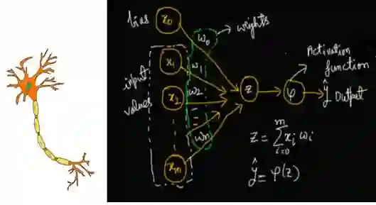 图1:我们能获得的最大灵感来自大自然——图中描绘了一个生物神经元和一个人工神经元