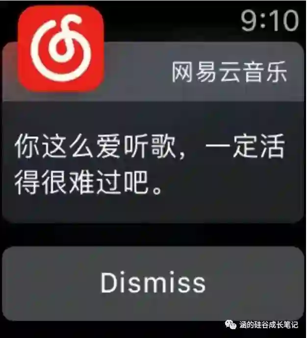 说回网易云音乐,如果真的特别想继续玩黑色幽默,完全可以根据用户习惯,个性化生成通知嘛。比如:“你这么爱听英文歌,英语一定还很不好吧,六级过了吗?” 没准 App 的打( shan )开( chu )率会进一步提高呢~