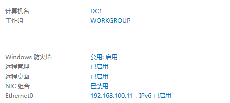 先修改ip地址,并且将dns指向自己,并且修改计算机名为DC1,升级成域控后,机器名称会自动变成dc1.contoso.com