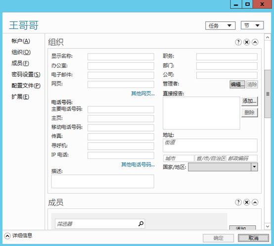 每个域用户账户内部都有一些相关的属性数据,例如地址 电话等,域用户可以通过这些属性来查找Active Directory内的用户,因此这些数据越完整越好。