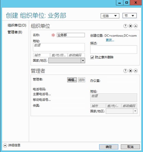 可以将用户账户创建到任何一个容器或组织单位(OU)内。先创建业务部的OU.然后再创建用户。