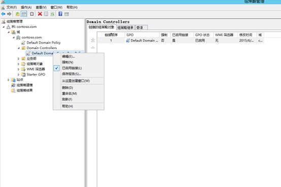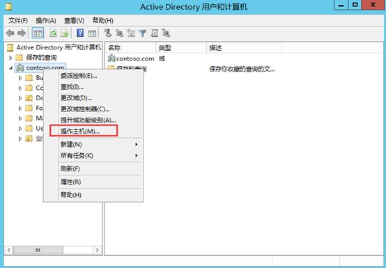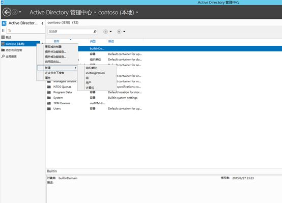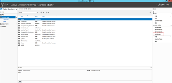 Active Directory用户和计算机-选择contoso.com右键操作主机