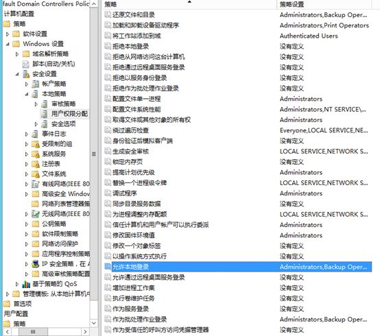 计算机配置-策略-windows设置-安全设置-本地策略-用户权限分配-允许本地登录,然后将用户或组加入到列表内