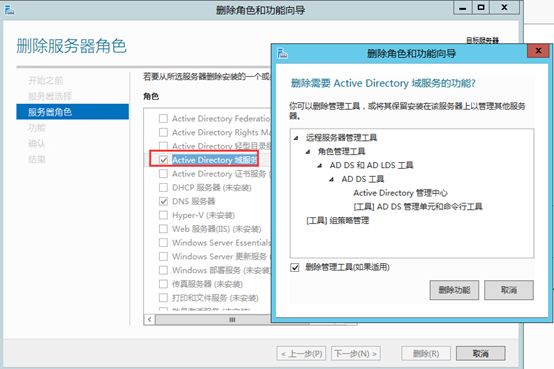 虽然这台服务器已经不再是域控了,不过此时域服务组件依然存在还是要继续去删除。