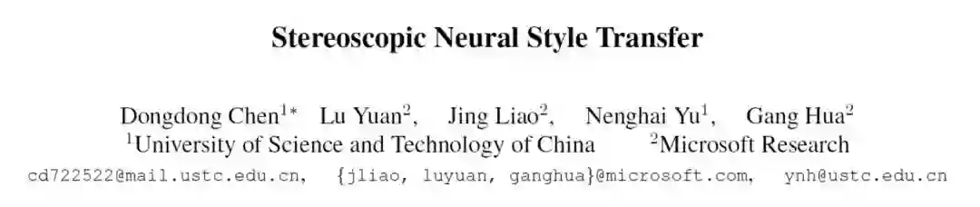 论文:Stereoscopic Neural Style Transfer(立体神经风格转换器)