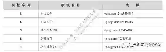 R模板是缺省的。这时Tripwire将在模式位、i节点号、链接数、uid、gid、文件大小、修改时间和MD5及Snefru签名有任何变化时进行报告。它将忽略访问和i节点时间戳的变化。