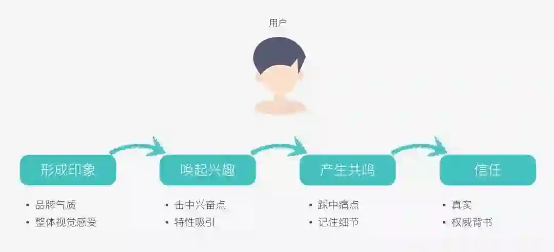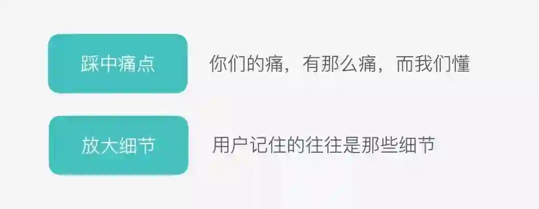 引起了用户的兴趣之后呢,就要开始让用户产生共鸣并认可我们。简单的方法是通过踩中他们的痛点并且描述详尽的痛点细节,当用户感同深受的时候,再告知他我们能解决,用户就能较为容易地认可我们的解决方案,且难忘。用户会记住这个场景这个细节,同时也就记住了我们。
