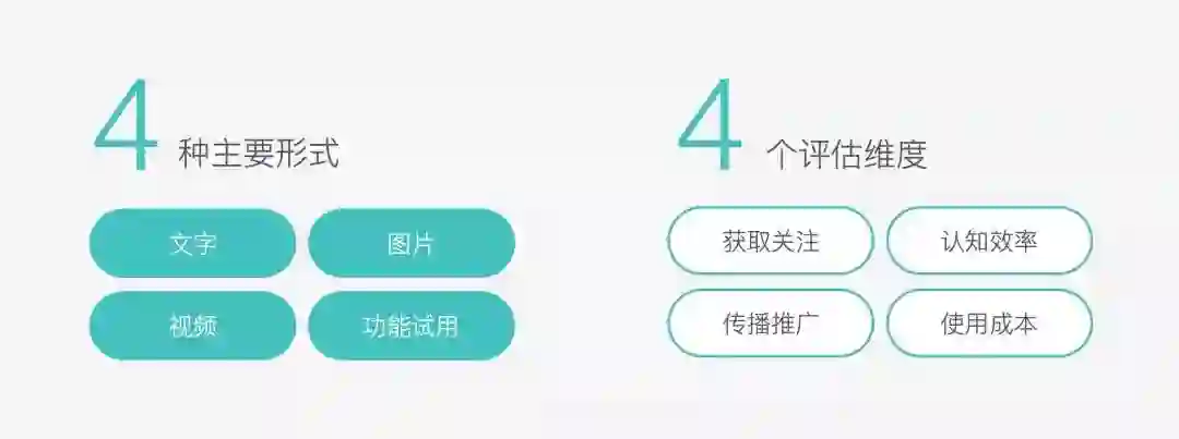 至于要选择什么样的形式来展现内容,笔者认为可以从四个纬度来考虑,比如认知效率上,对于复杂的业务流程想要传达给用户,可能就需要视频,但考虑到传播和推广成本,视频又不一定能够比图文更好。需要根据具体情况具体考虑。