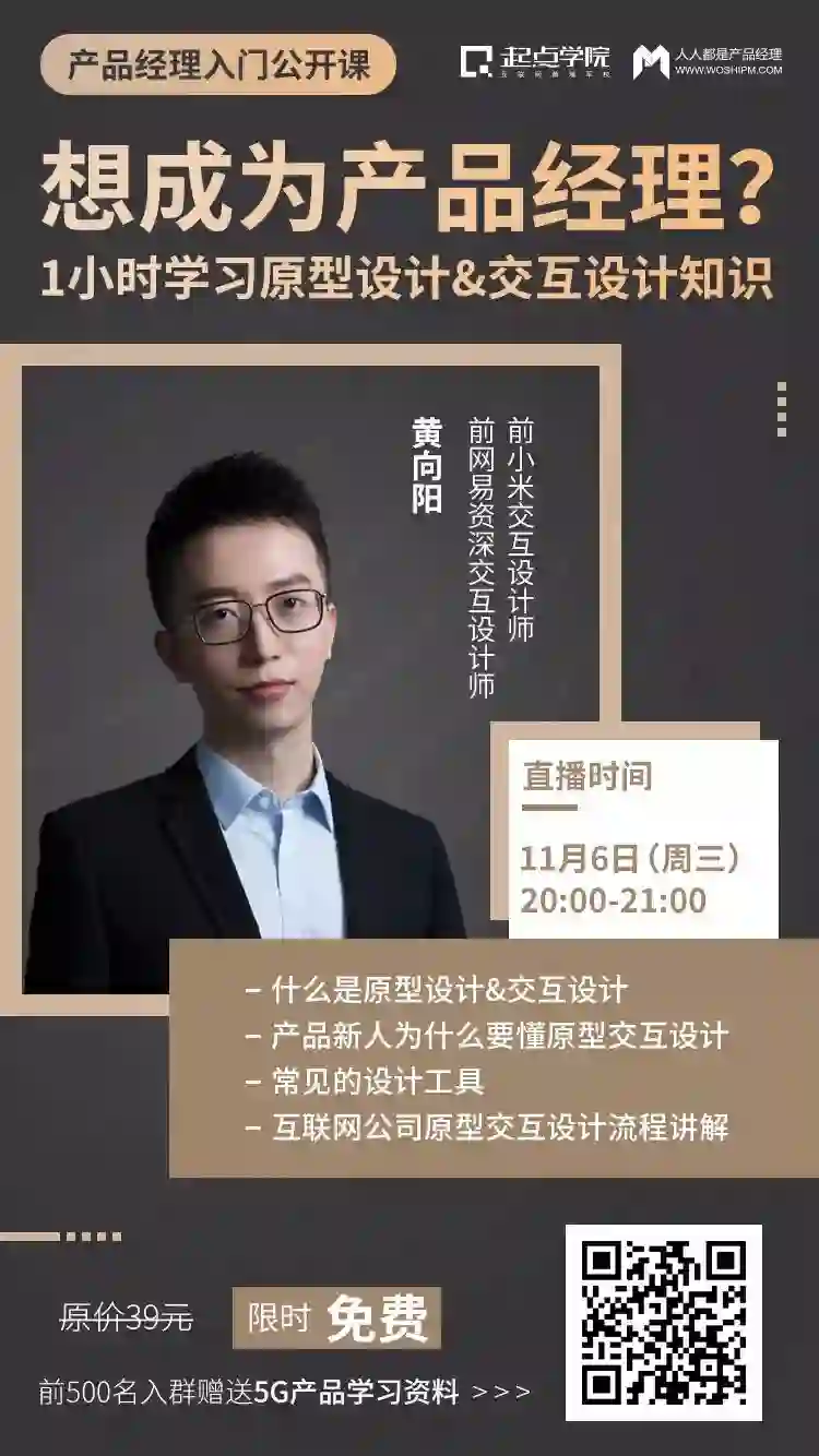 为了帮助更多产品新人快速了解交互设计,起点学院特邀前网易资深交互设计师&前小米交互设计师 @黄向阳老师,用1个小时的时间跟大家聊聊产品新人那些不得不知的原型交互常识。