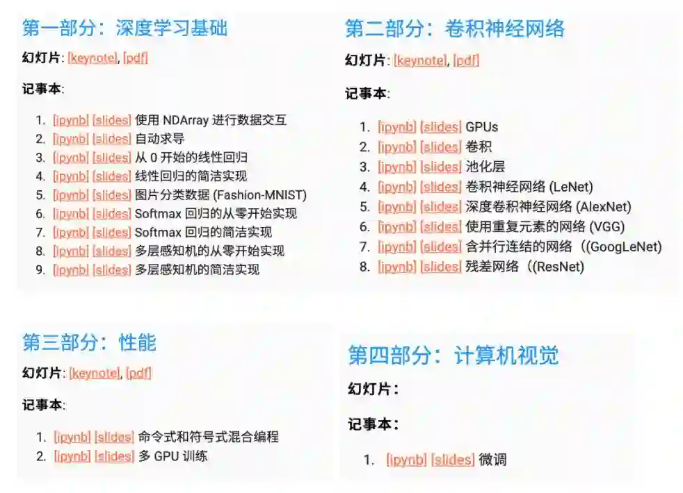今天,李沐已经把这次深度学习实训营白天的教学内容和代码上传到 Gituhub 和 D2L.ai 网站了,大家可以到网站上先行学习一波: