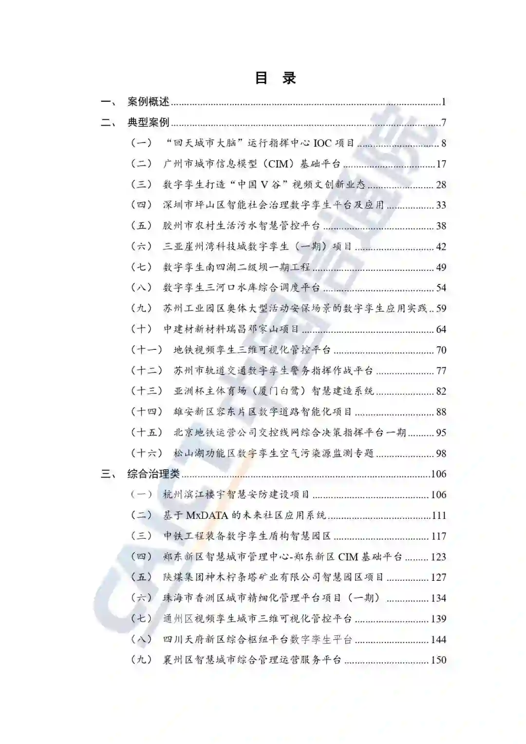 《案例汇编》通过对国内外已实施的数字孪生城市实践案例分析,结合政策要求、行业热点、市场规模等态势,根据项目覆盖范围和行业应用,将遴选出的案例划分为园区(新区)综合治理、一网统管、能源电力、水利水务、智能制造、交通物流等领域,并择优选择16个典型案例,以期为国家及地方政府推动数字孪生应用建设提供有力借鉴。