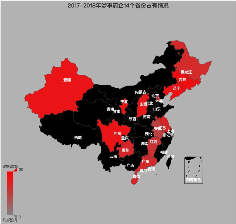 我们再来看看各个省份中,长春长生等占据的百分比