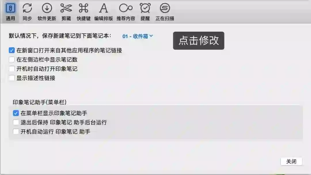 一般情况下,我们会将其设置为默认笔记本,具体方法是点击「偏好设置 - 通用」,然后点击下图所示的笔记名称选择默认笔记本。