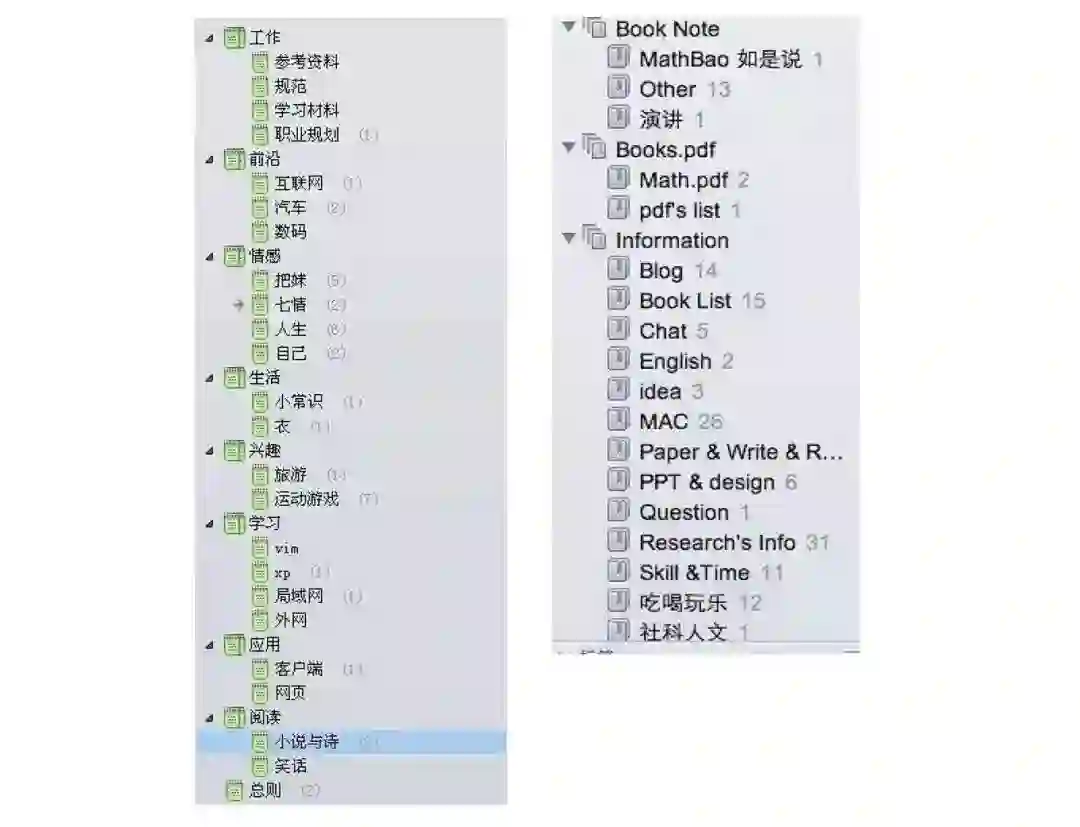 对知识的分类往往能反映出一个人对事物理解的深度,在印象笔记里的分类也同样如此,虽然没有绝对意义上的好坏,但是分类的确是知识管理的核心技能。