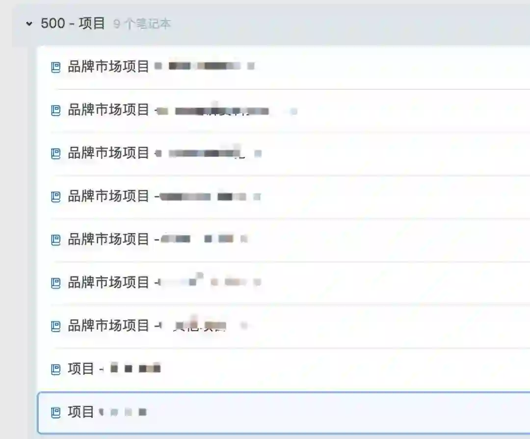除此之外,工作信息和主题研究类信息,在某一个实践阶段可能是每天都要打开的笔记,自然也需要放到一个笔记本当中,而这也便于我们在项目结束之后也将笔记本进行归档。