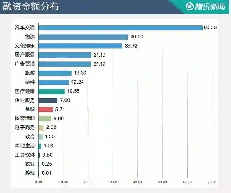 【融资金额分布】本周共有117个项目获得投资,累计金额超238.13亿人民币,“汽车交通”领域成为本周最吸金的领域,融资金额超过66.30亿人民币,其次为“物流”领域共获得了36亿人民币融资。