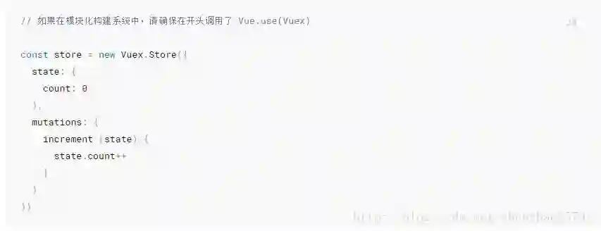 安装 Vuex 之后,让我们来创建一个 store。创建过程直截了当——仅需要提供一个初始 state 对象和一些 mutations: