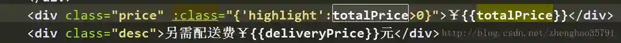 如上图所示,在html中,我们只需要使用{{totalPrice}}这个计算属性就可以来表示最终的商品总额。我们不需要关注这个变量的数值变化,totalPrice这个变量的逻辑写在对应的computed计算属性中。