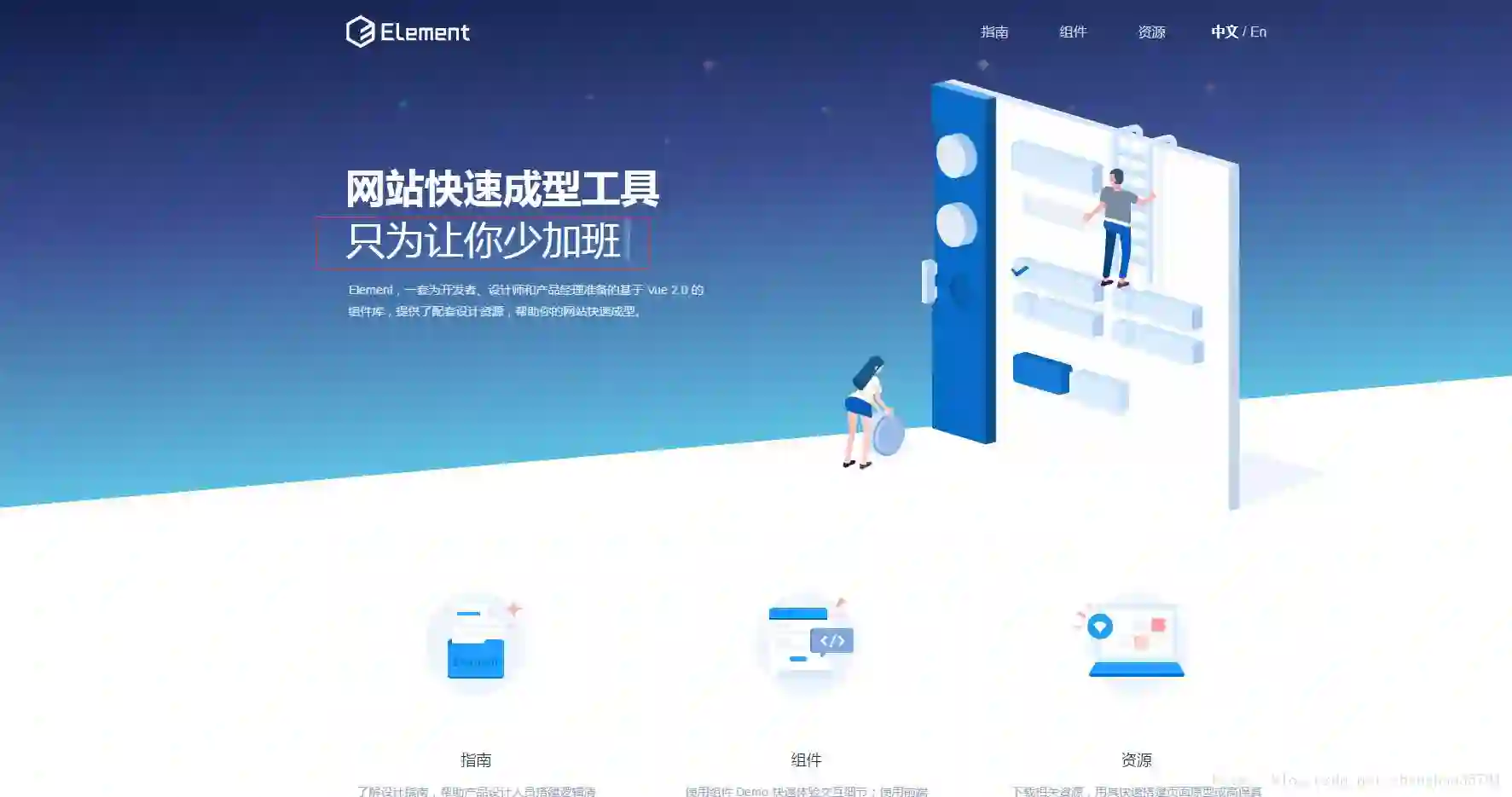在vue组件库方面,个人不推荐使用UI组件库,毕竟自己造轮子的过程还是很有成就感的。当然,如果更重视开发效率,并且选择了vue2.0作为前端框架,那么饿了么推出的Element组件就是一个很不错的选择。其github项目(https://github.com/ElemeFE/element)更新比较频繁,虽然项目会有些不稳定,但是目前为止element就是最好的支持vue2.0的UI组件。就像它的口号一样,“快速成型,就为让你少加班”。