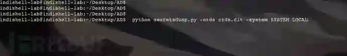 现在,我们可以使用python脚本secretsdump.py,从“ntds.dit”和“SYSTEM”文件中提取Domain,udi,rid LM和NT hashes。命令如下: