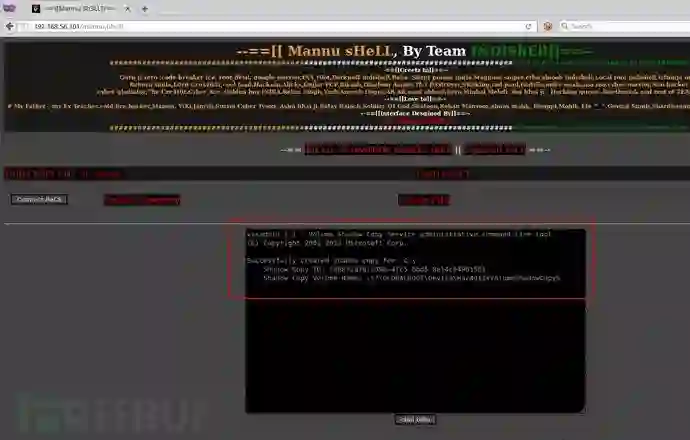 我们需要有新创建的“C”盘卷影副本的名称它将在命令的输出中,因此我们将把上述命令的输出重定向到我们拥有web shell访问权的机器上。