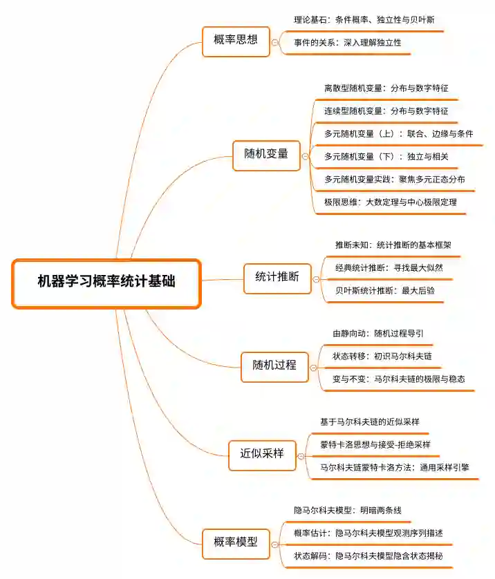 详解 6 大核心板块:概率思想、随机变量、统计推断、随机过程、采样理论、概率模型,筑牢机器学习核心基础。