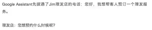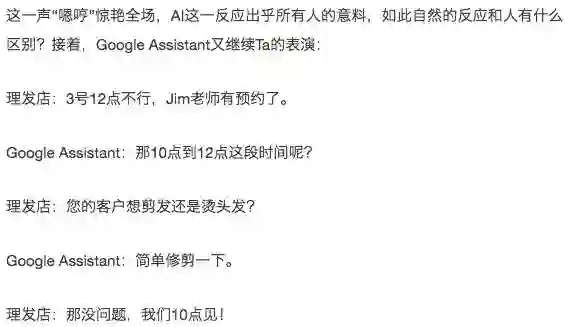 整段对话,Google Assistant表现的自然流畅,理发店那头丝毫没有察觉到自己竟然是在和AI对话。