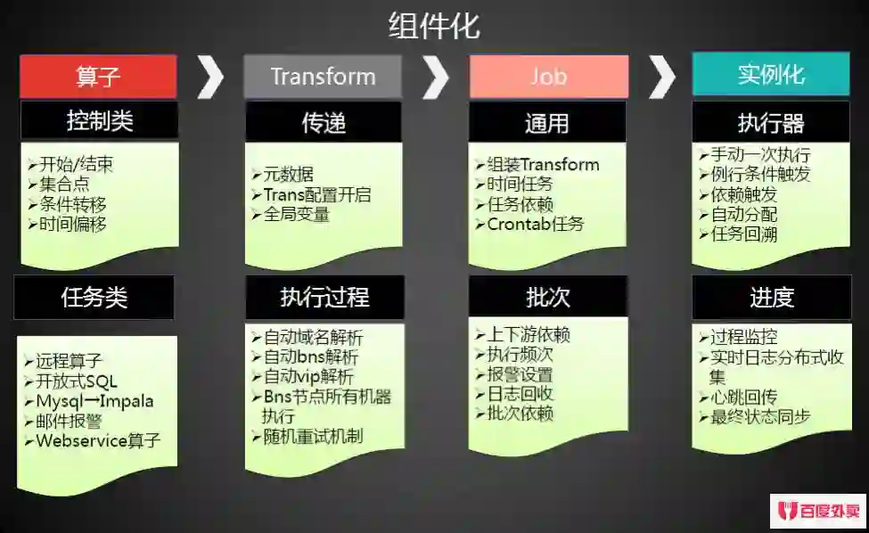 大数据分布式调度的应用场景和ETL的定义过程、数据引擎和业务场景的需求有着至关重要的关联,分布式调度的过程是通过场景化驱动逐步完善的过程,百度外卖大数据的调度V2.0是满足了通用的调度之后,发现存在的数据解释和细粒度更新延迟等问题之后,开启了逐步迭代完善过程,后期也期待我们的系统开源的一天。