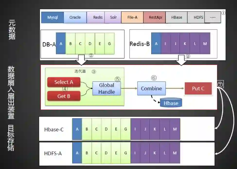 多步骤过程:多步骤顾名思义就是数据的准备不是一蹴而就的,例如在3个Mysql库、Postgresql、Oracle中获取员工信息,而员工编号是统一的,最终数据在DB2中汇聚在一起,最基础的步骤是三份数据汇入到Oracle中,这就涉及到前面通过key做数据的Merge,这里会涉及到数据的插入和更新,但是如果有key存在并且不同数据源目标数据列清楚的情况下,三份数据早到和晚到场景都没有太大区别。第二步骤则根据汇总完的数据分析出一个过滤场景下的聚合信息,这步骤的场景作为计算数据源,再次进行数据的扇出插入结果。第三步骤可以把第一步的临时结果进行删除。所以在多步骤的场景下数据是分步骤完成了汇聚、聚合和删除。