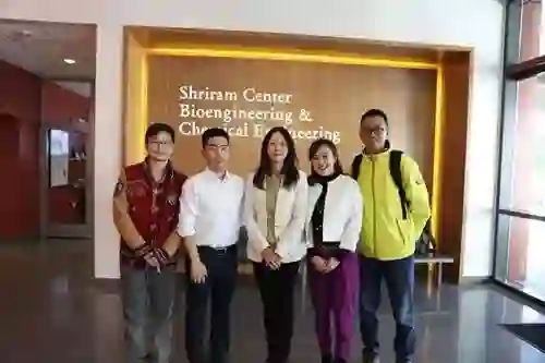 江苏广电总台《天涯咫尺江苏人》摄制组与鲍哲南教授在斯坦福大学化学工程系合影